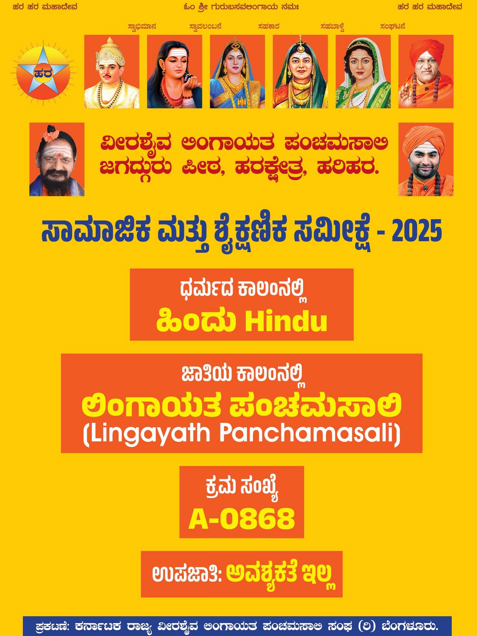ಪ್ರಕಟಣೆ : ವೀರಶೈವ ಲಿಂಗಾಯತ ಪಂಚಮಸಾಲಿ ಜಗದ್ಗುರು ಪೀಠ,ಹರಿಹರ.