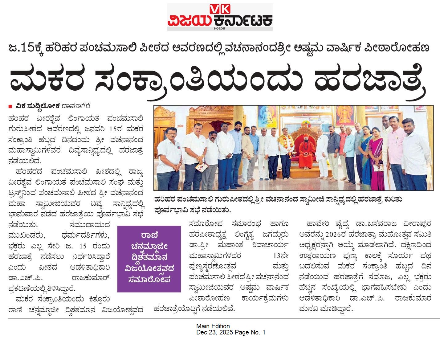 ಪ್ರಕಟಣೆ:ವೀರಶೈವ ಲಿಂಗಾಯತ ಪಂಚಮಸಾಲಿ ಜಗದ್ಗುರು ಪೀಠ,ಹರಿಹರ.